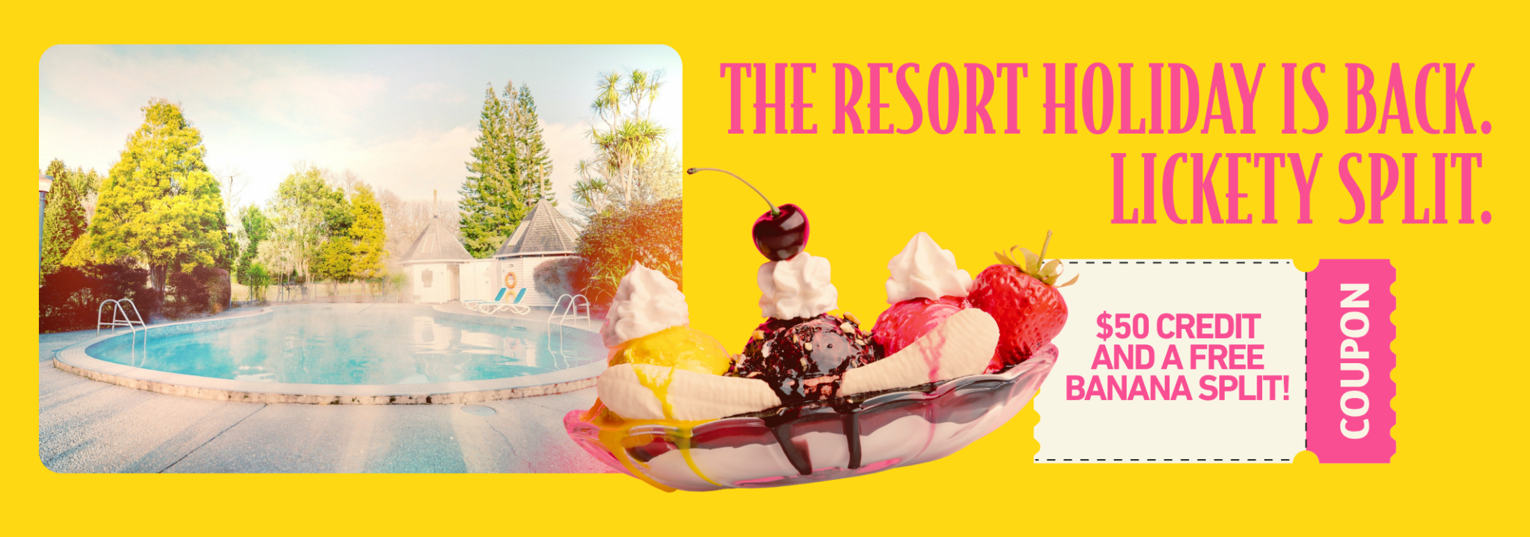 Book your summer stay at Wairakei Resort Taupō and you’ll receive a $50 food & beverage voucher to spend in the Geyser Bar & Restaurant, plus a complimentary banana split to kick your getaway off on the sweetest note.