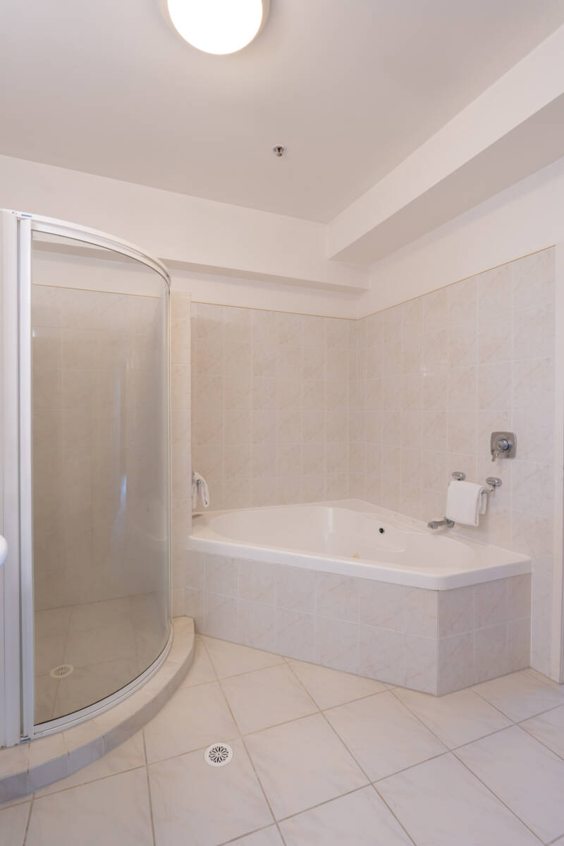 Overlooking leafy gardens, the hotel’s stylish Villas are suitable for families or groups of up to 4 guests using existing bedding, so they are perfect for people looking for some of the best accommodation in Taupō. Comfortable and well-equipped, the space features a master bedroom with a king-size bed, an open-plan living area with a dining table and two single beds. The fitted kitchen comes with a stovetop and dishwasher, as well as a washing machine and dryer. The bathroom, with a shower and bath combined, can be accessed from both the master bedroom and the living area. An extra bed can be provided on request, and Villas can interconnect with Studios for additional space. High-speed WiFi is available, and the kids can watch Sky channels on the TV when they need entertaining, giving you the chance to pull up a chair and pour yourself a glass of something cold from the fridge.